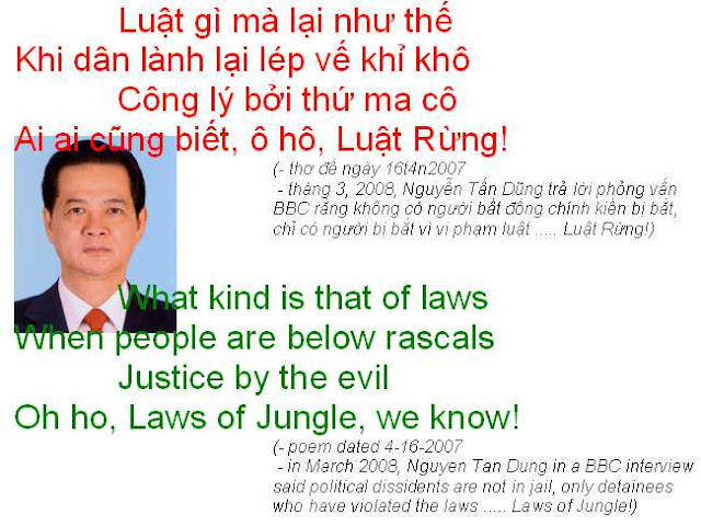 Vài bạn thường đọc Blog VNTuongLai có thể nghĩ rằng bài này viết ra để tấn công các đồng chí Dũng-Triết và Tập đoàn Cộng sản. Không đâu, lâu lâu phải để cho các đồng chí ấy nghỉ ngơi, ngủ nghỉ chứ; nhất là Chủ tịch Nguyễn Minh Triết vì đồng chí ấy cần phải ngủ để nửa ngày sau "thay phiên cho Cuba canh gác hòa bình thế giới" như đồng chí ấy đã khoe khoang ở Thủ đô Havana gần đây. Và cũng chính Đồng chí Triết cần nghỉ ngơi nhiều sau khi tiếp tục thực hành những hoạt động tham nhũng mà đồng chí ấy khoe với Đại hội Việt kiều 2009 tại Hà Nội là một "quy luật muôn đời" [cần phải noi theo?].